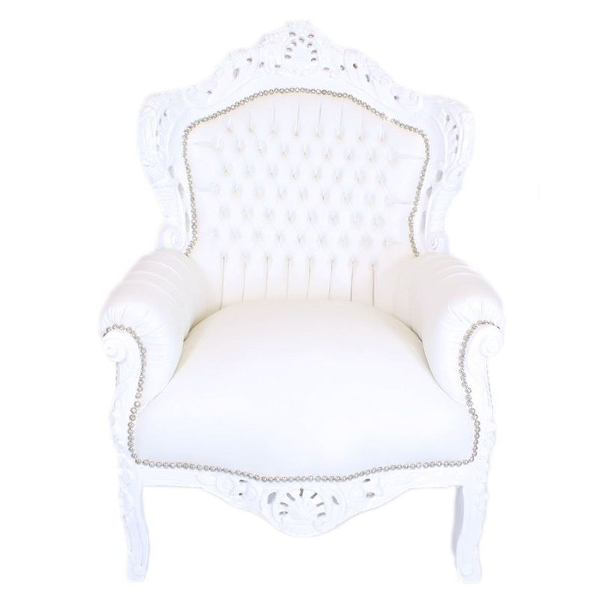 Barock Sessel King in weißer Lederoptik mit Glitzersteinen - Limited Edition