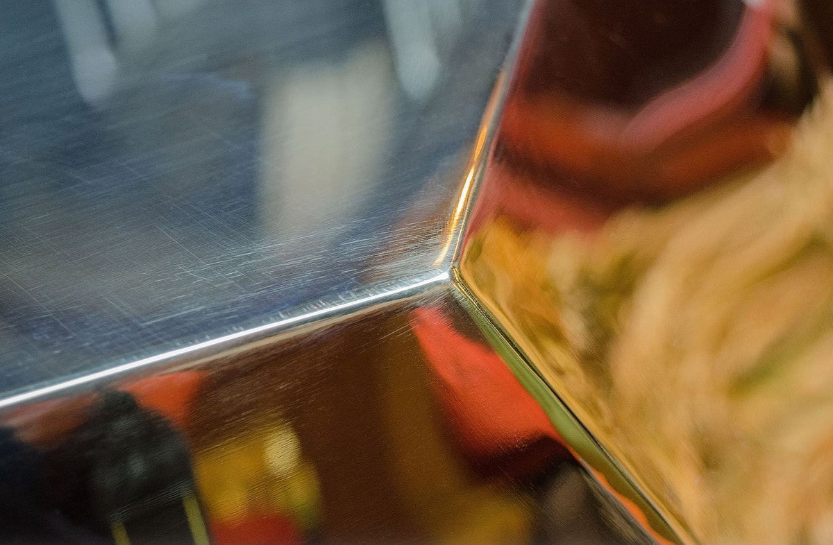 Dennoch sind Unregelmäßigkeiten wie Schweißlinien, Unebenheiten, Schleif- / Polierkratzer usw. unvermeidbar und gehören zum Charme eines handgefertigten Artikels.