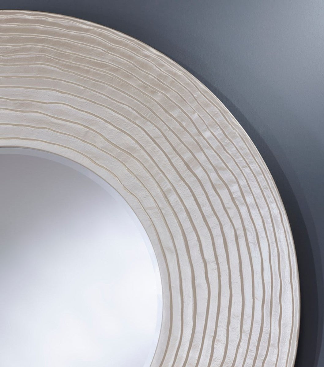 Wohnzimmer Wandspiegel Perlweiß Ø 109 cm - Luxus Wohnzimmer Accessoires