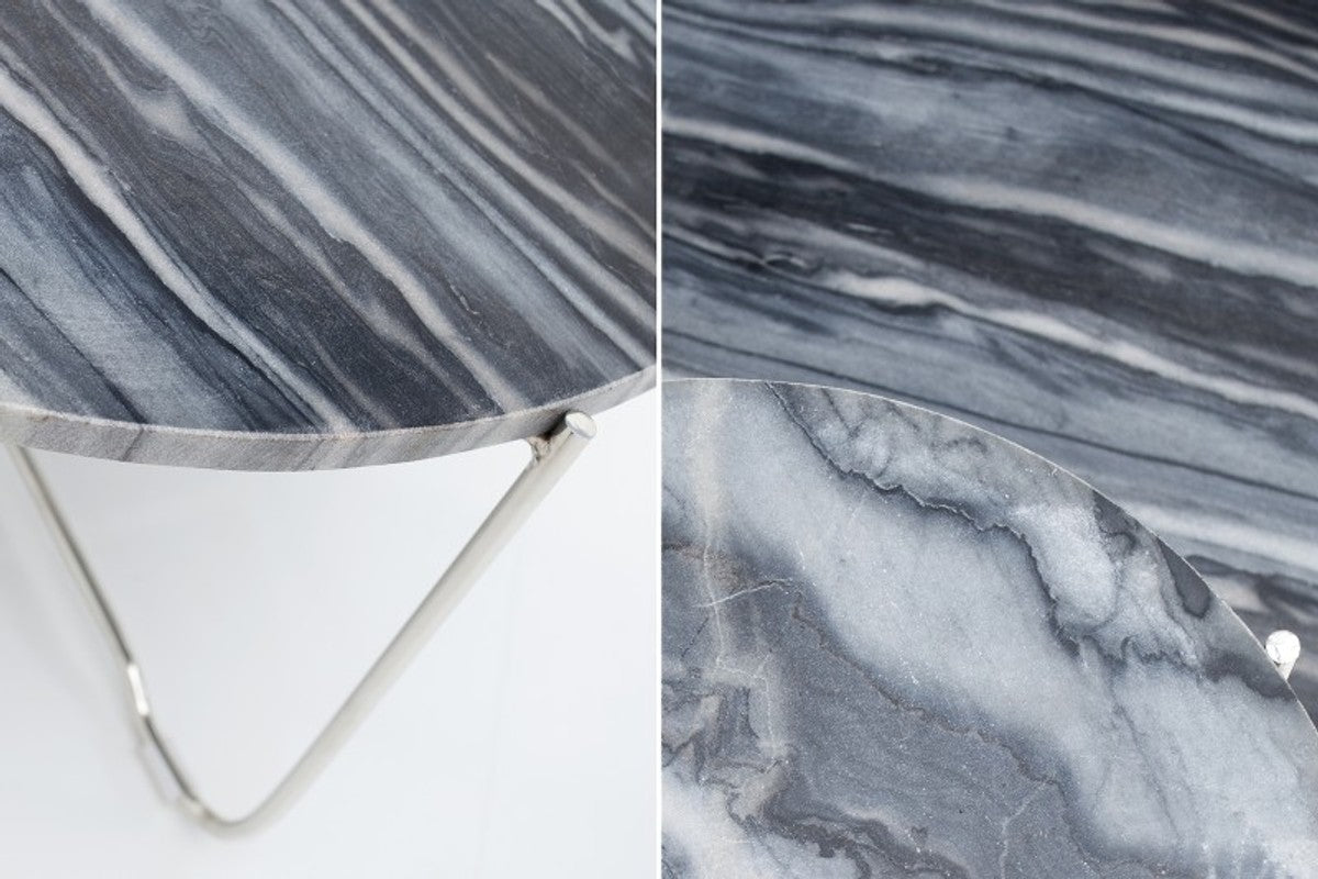 Designer Beistelltisch mit Marmorplatte Ø 60 cm Grau / Silber H. 33 cm - Unikat
