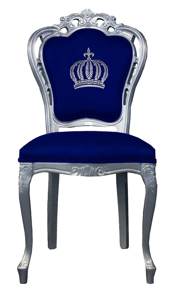 Der prachtvolle blau-silber farbene Luxus Barock Esszimmerstuhl ist ein absoluter Blickfang für jedes Esszimmer.