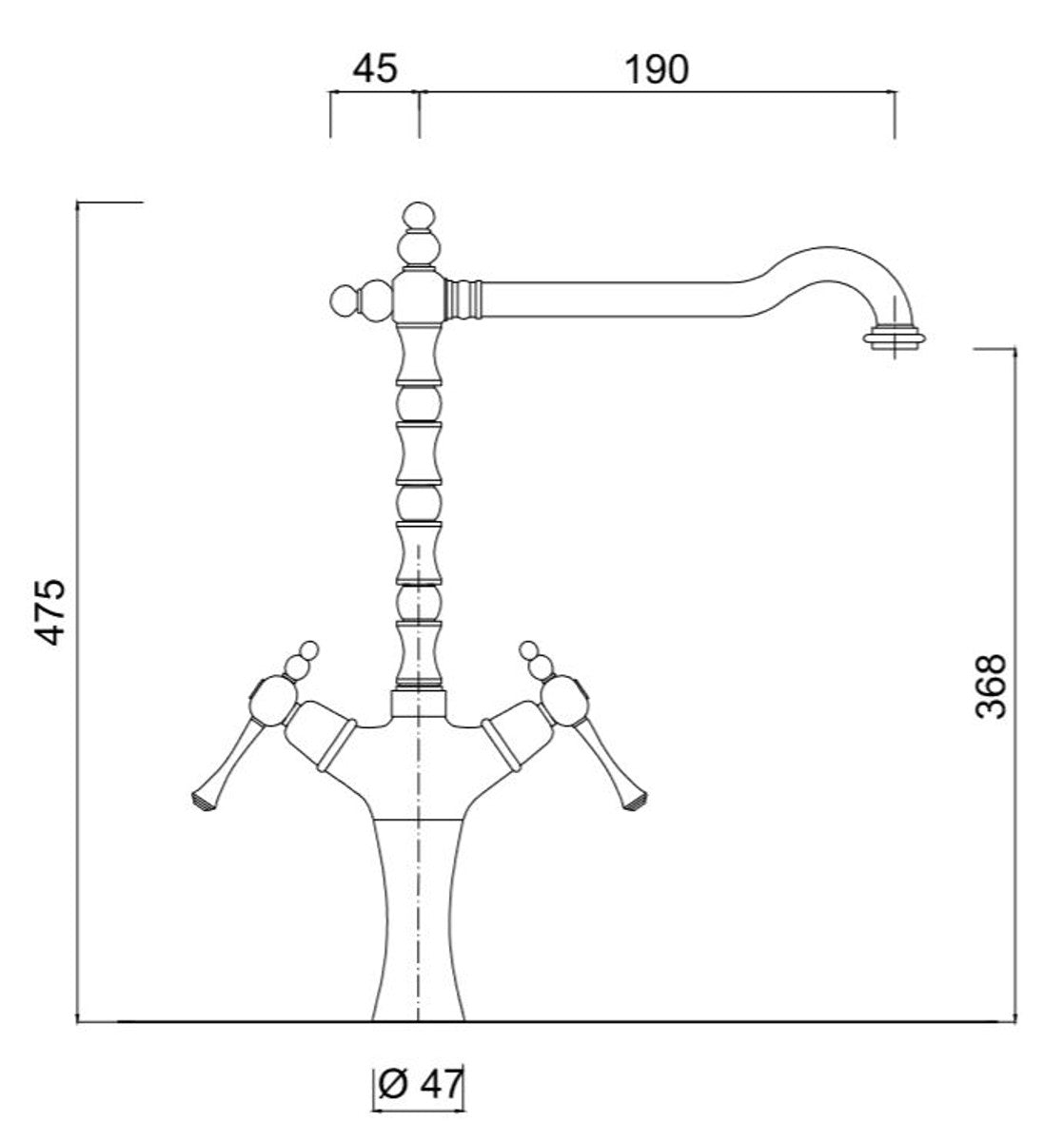 Jugendstil Retro Waschtisch Armatur Silber H. 47,5 cm - Waschbecken Armatur Made in Italy
