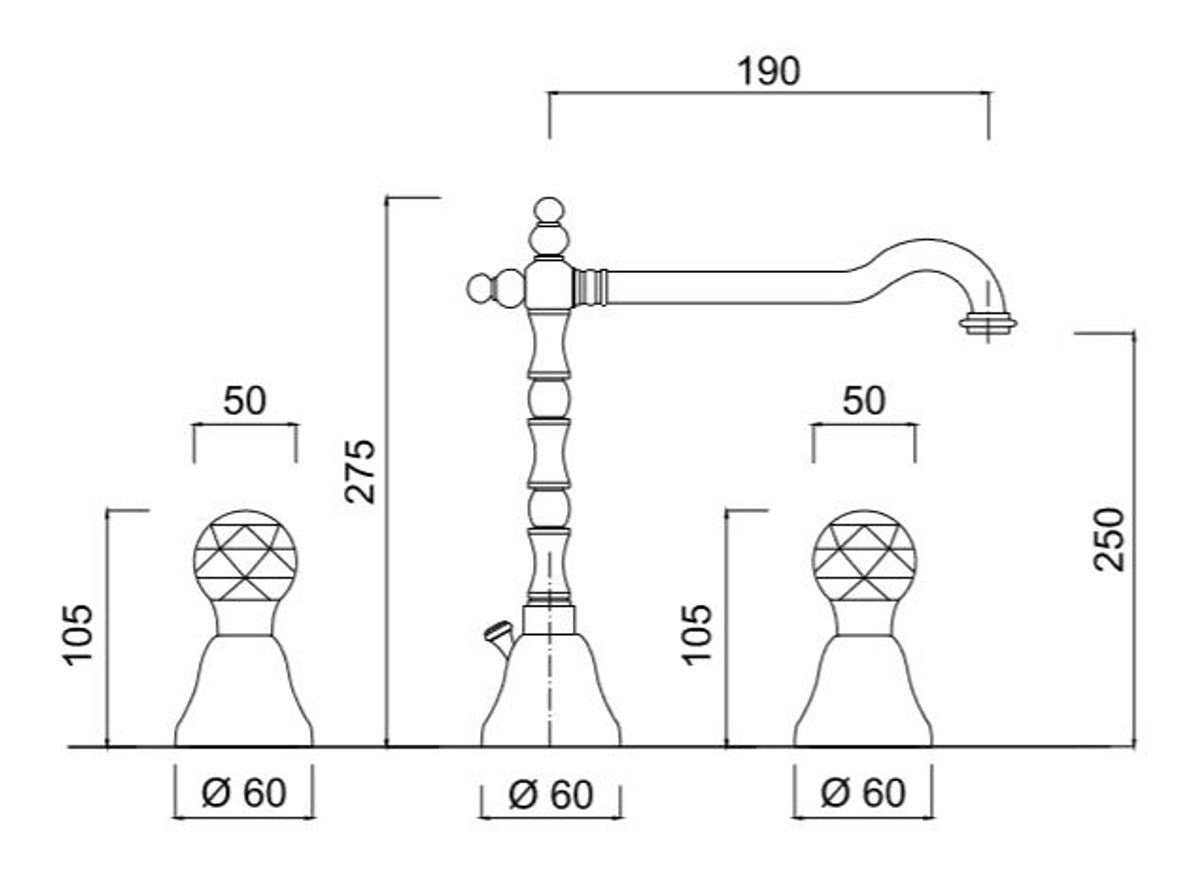 Luxus Waschtisch Armatur / Dreilochbatterie mit Swarovski Kristallglas Silber H. 27,5 cm - Luxus Qualität