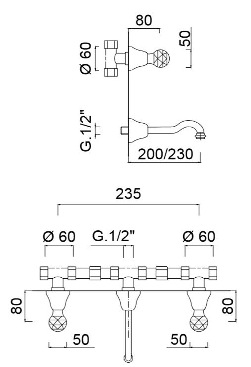 Luxus Waschtisch 3-Loch-Wandarmatur mit Swarovski Kristallglas Silber - Waschtischarmatur für die Wandmontage