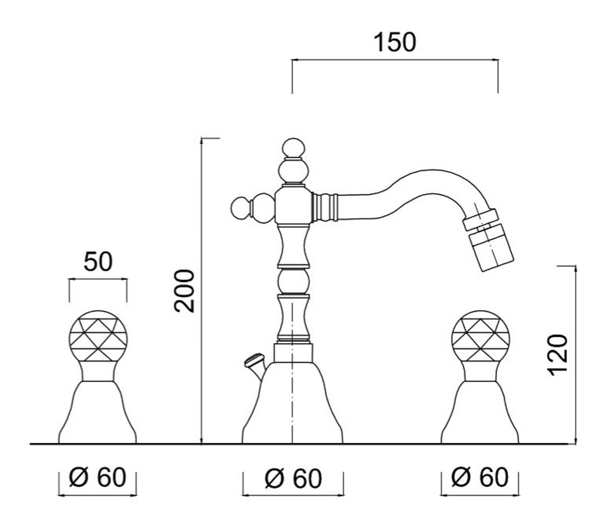 Bidet-Dreilochbatterie, Rohrauslauf, Ablaufgarnitur 1”1/4
