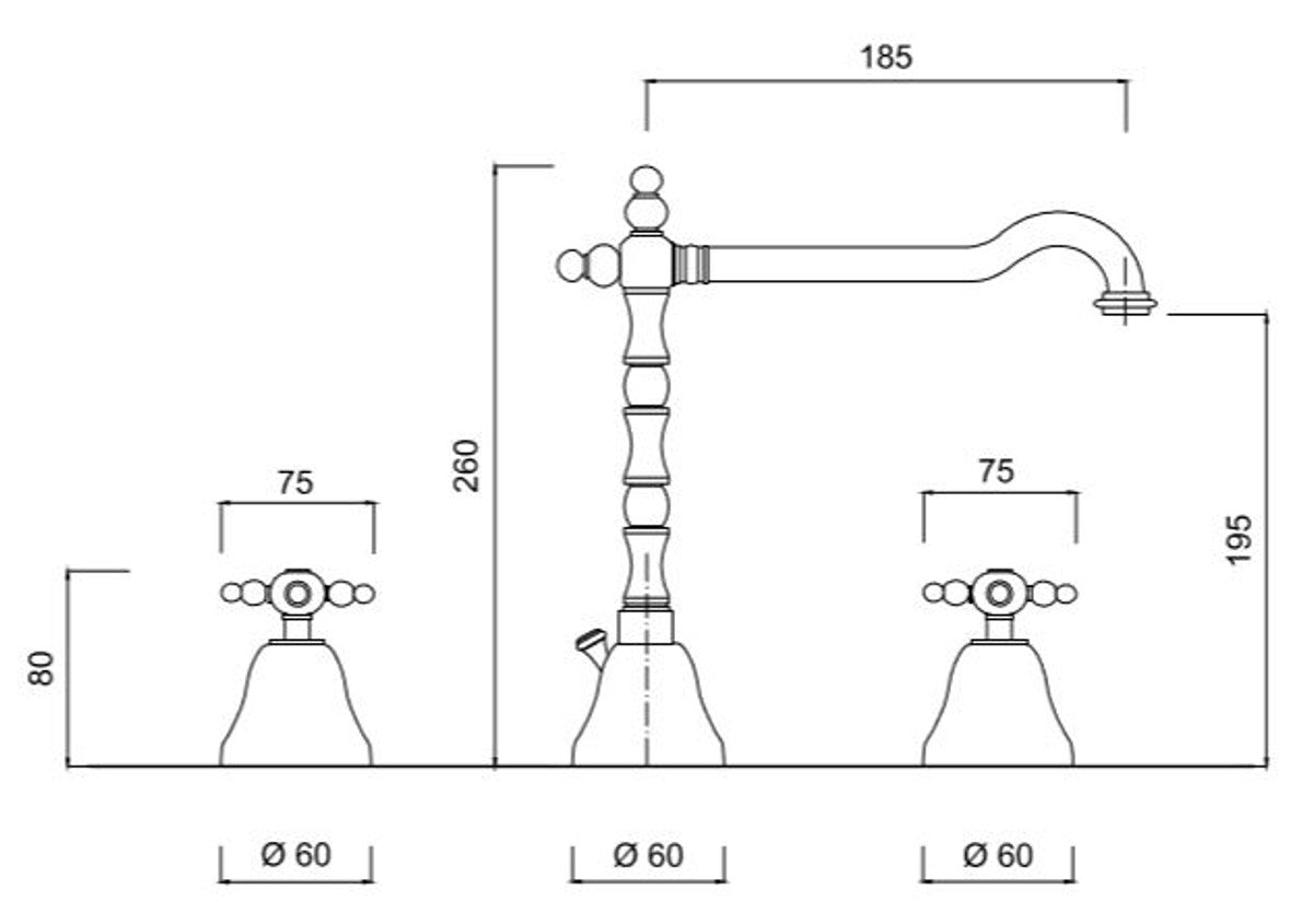 Jugendstil Retro Waschtisch-Dreilochbatterie Silber - Luxus Badezimmer Waschtischarmatur