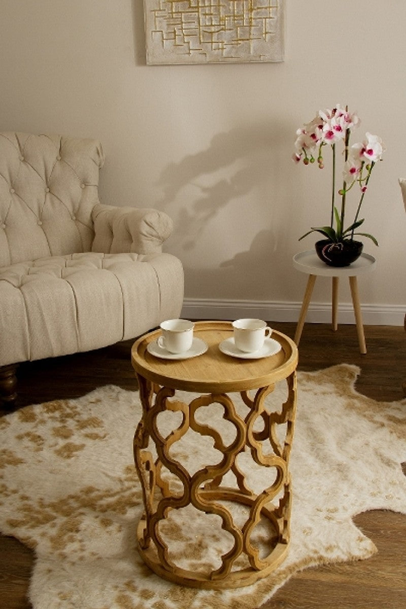 Designer Beistelltisch Naturfarben Ø 40 x H. 54 cm - Moderner Runder Holztisch
