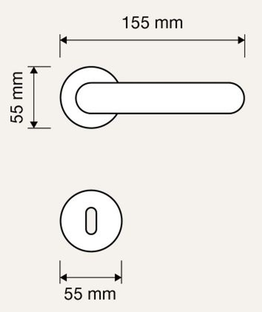 Abmessungen der Türgriffe: 155 x H. 55 mm