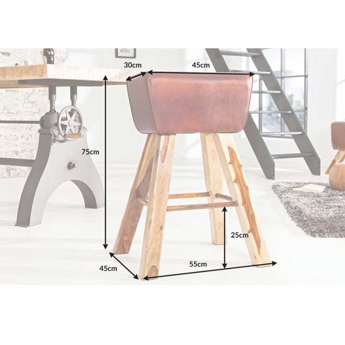 Designer Echtleder Barstuhl Braun - Barhocker - Möbel Restaurant Hotel
