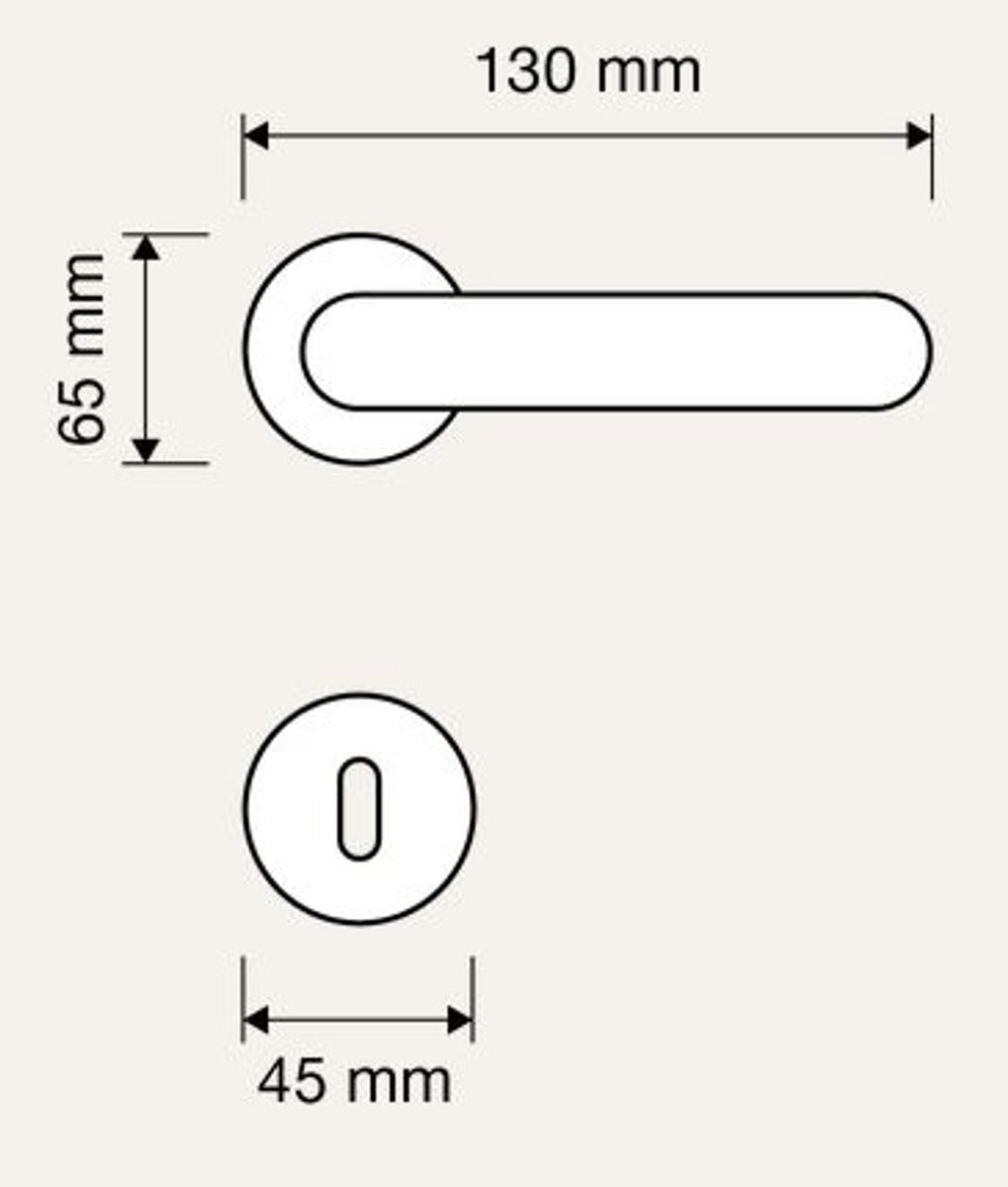 Abmessungen der Türklinken: 130 x H. 65 mm