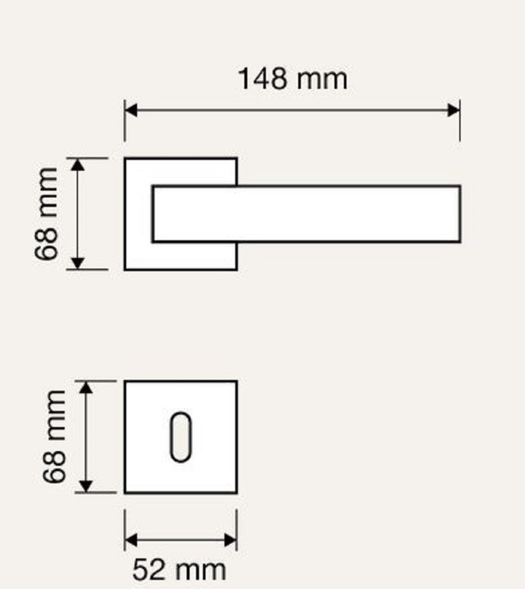 Abmessungen der Türgriffe: 148 x H. 68 mm