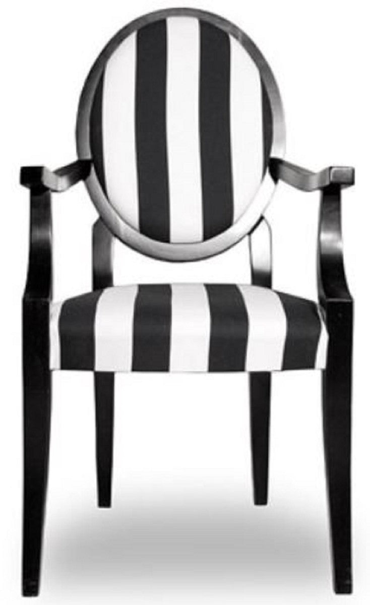 Barock Esszimmerstuhl Medaillon Gestreift Schwarz / Weiß 55 x 60 x H. 99 cm - Küchenstuhl mit Armlehnen