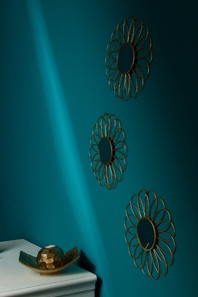 Designer Spiegel / Wandspiegel 3er Set Gold Ø 25 cm - Deko Accessoires