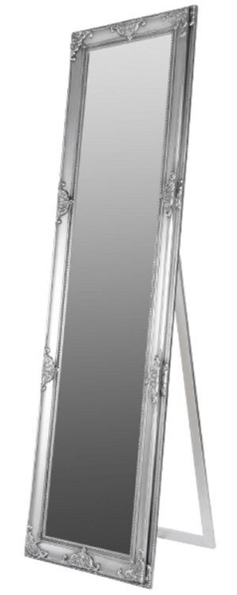 Barock Standspiegel Silber 50 x H. 180 cm - Handgefertigter Spiegel mit Holzrahmen & wunderschönen Verzierungen