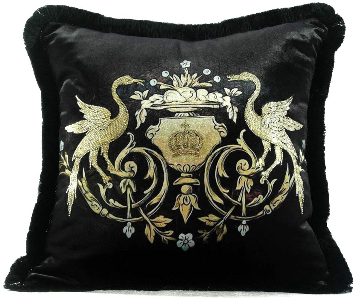 Harald Glööckler Luxus Deko Kissen Pompöös by Krone & Schwäne mit Strass Steinen Schwarz / Gold - Feinster Samtstoff - Glööckler Kissen