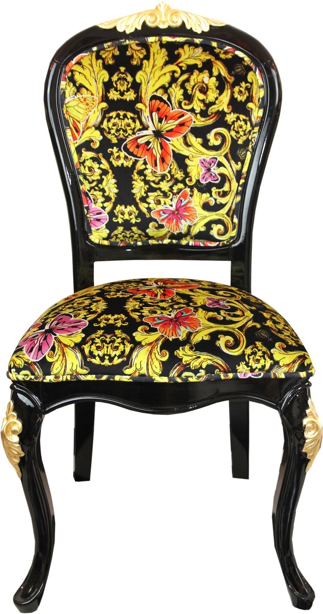 Pompöös by Luxus Barock Esszimmerstuhl Butterflies & Flowers Mehrfarbig / Schwarz / Gold - Pompööser Barock Stuhl designed by Harald Glööckler