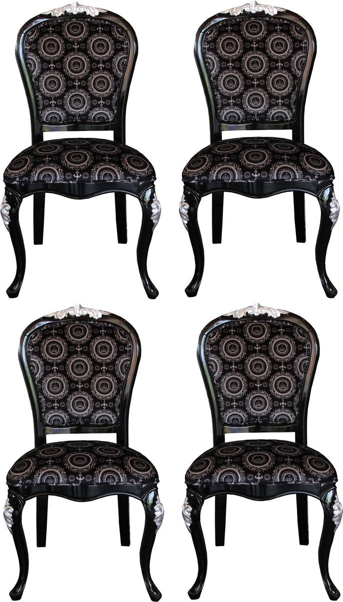 Pompöös by Luxus Barock Esszimmerstühle mit Krone Schwarz / Silber - Pompööse Barock Stühle designed by Harald Glööckler - 4 Esszimmerstühle - Barock Esszimmermöbel