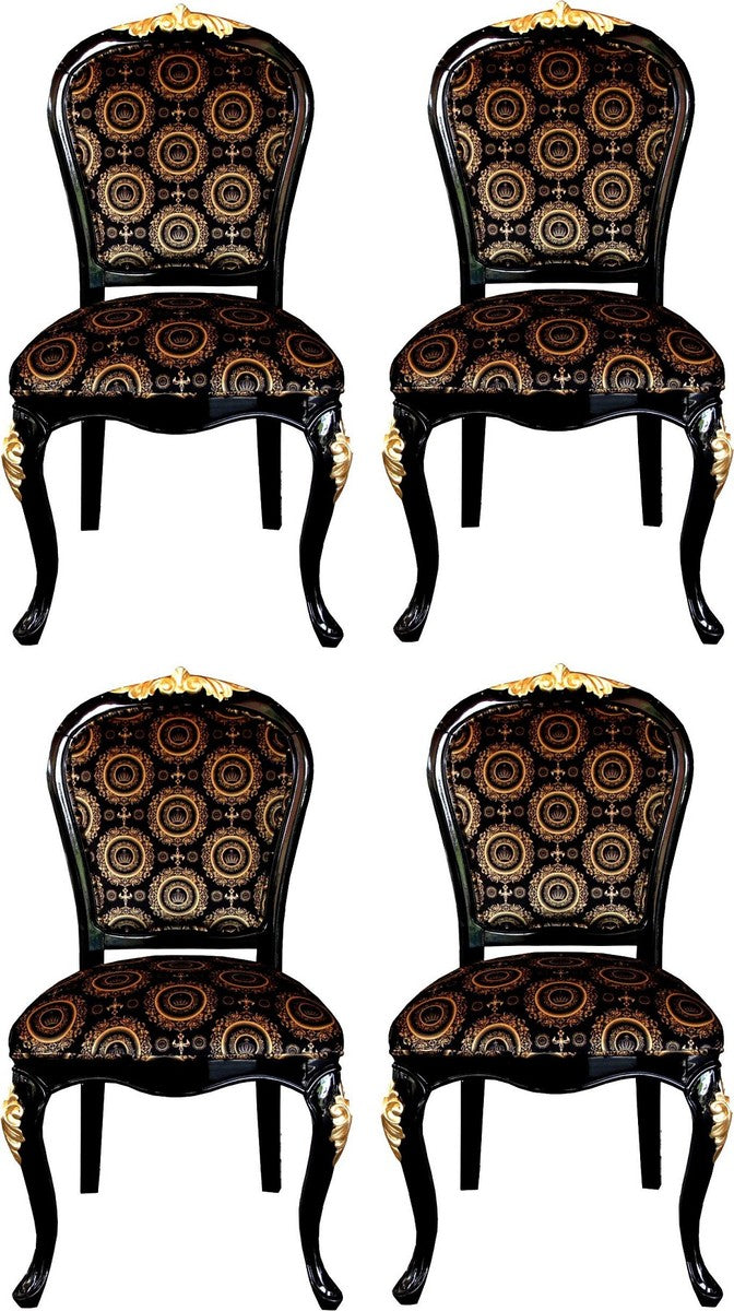 Pompöös by Luxus Barock Esszimmerstühle mit Krone Schwarz / Gold - Pompööse Barock Stühle designed by Harald Glööckler - 4 Esszimmerstühle - Barock Esszimmermöbel