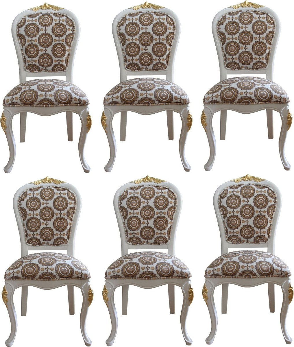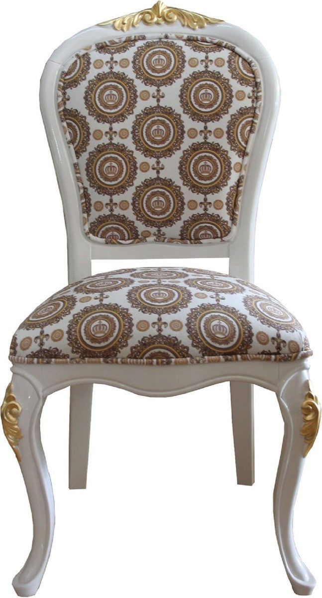 Pompöös by Luxus Barock Esszimmerstühle mit Krone Weiß / Gold - Pompööse Barock Stühle designed by Harald Glööckler - 6 Esszimmerstühle - Barock Esszimmermöbel