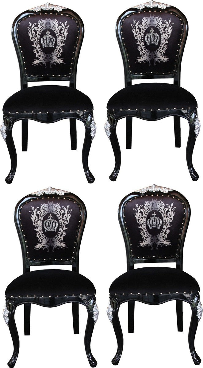 Pompöös by Luxus Barock Esszimmerstühle mit Krone Schwarz / Silber - Pompööse Barock Stühle designed by Harald Glööckler - 4 Esszimmerstühle