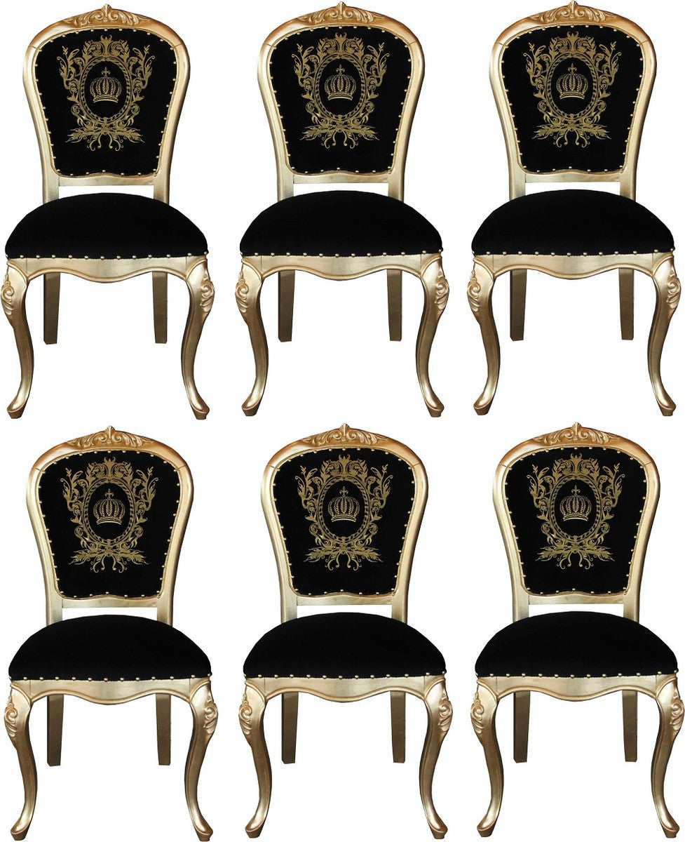 Pompöös by Luxus Barock Esszimmerstühle mit Krone Schwarz / Gold - Pompööse Barock Stühle designed by Harald Glööckler - 6 Esszimmerstühle