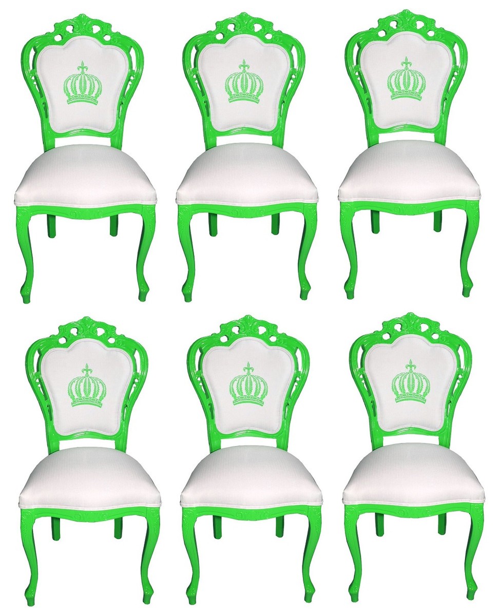 Pompöös by Luxus Barock Esszimmerstühle Weiß / Grün - Pompööse Barock Stühle designed by Harald Glööckler - 6 Esszimmerstühle - Barock Esszimmermöbel