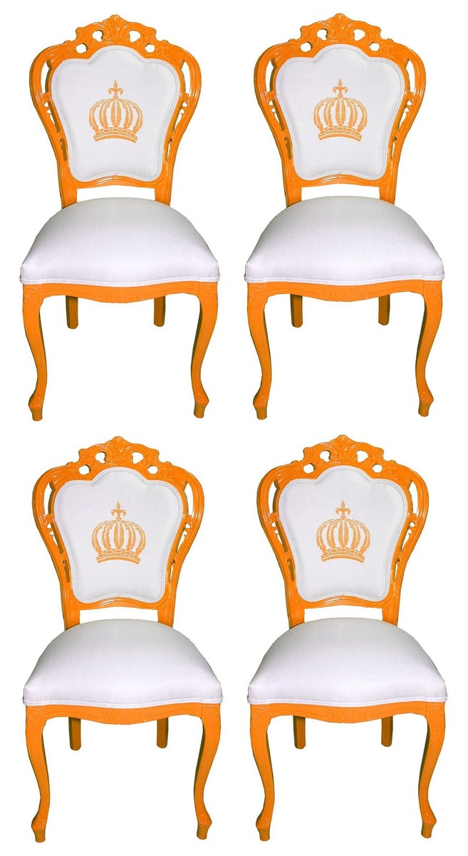 Pompöös by Luxus Barock Esszimmerstühle Weiß / Orange - Pompööse Barock Stühle designed by Harald Glööckler - 4 Esszimmerstühle - Barock Esszimmermöbel