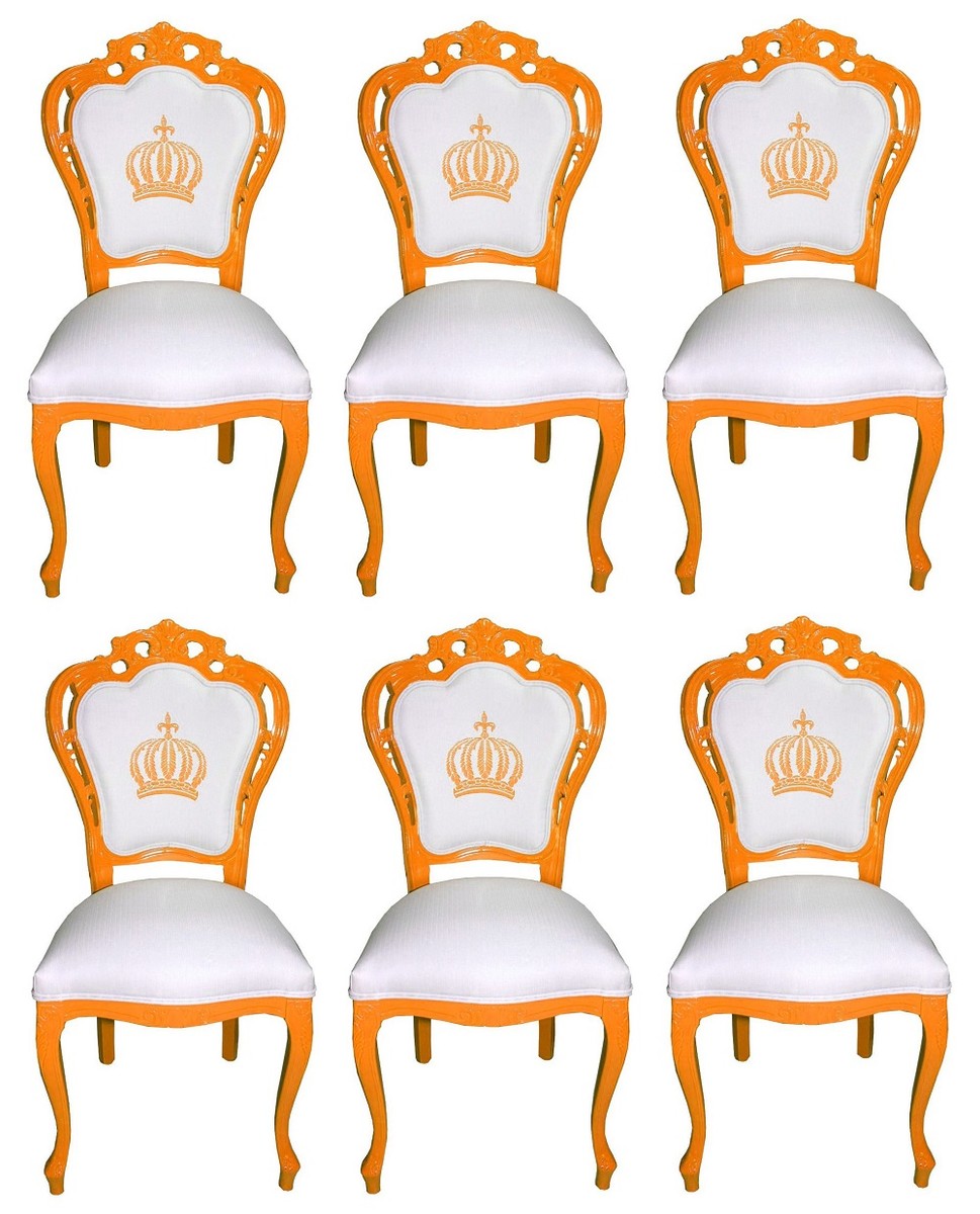 Pompöös by Luxus Barock Esszimmerstühle Weiß / Orange - Pompööse Barock Stühle designed by Harald Glööckler - 6 Esszimmerstühle - Barock Esszimmermöbel