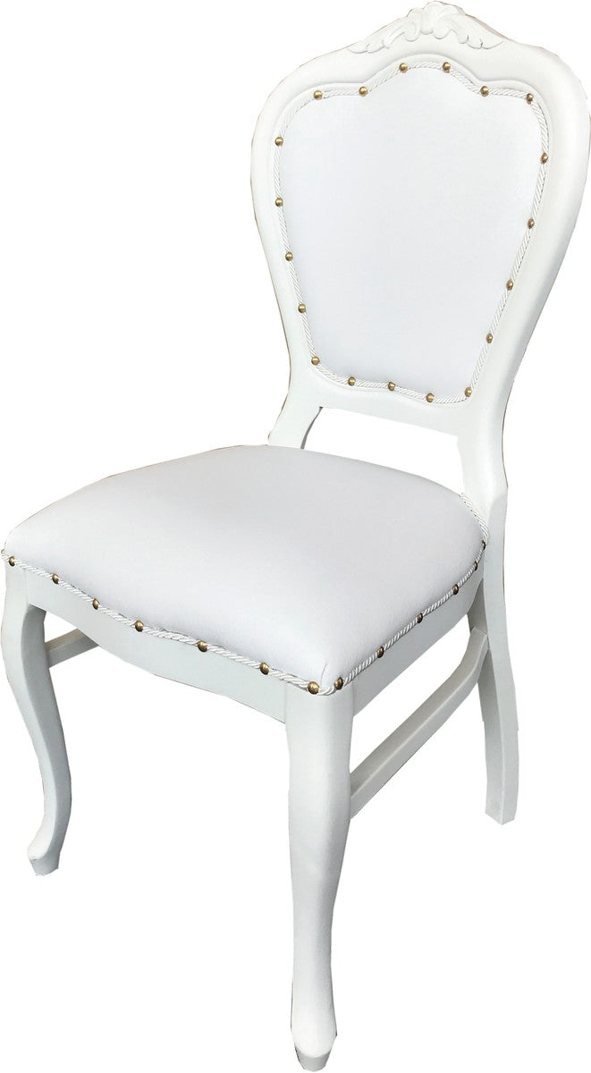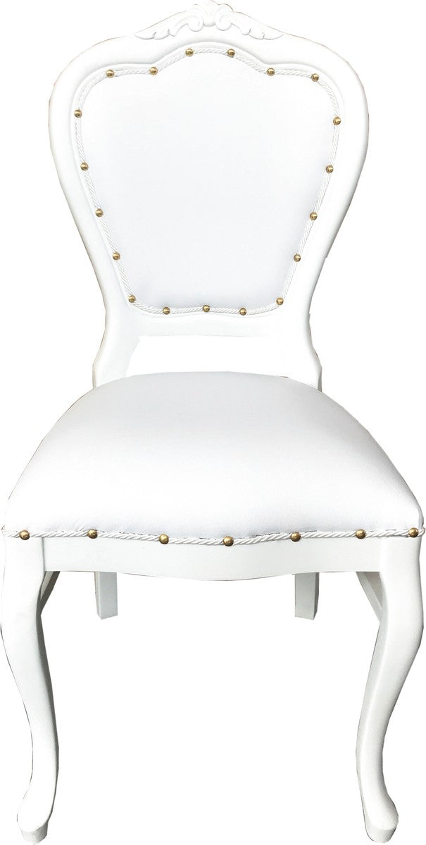 Barock Luxus Esszimmer Stuhl Weiß Kunstleder / Weiß - Handgefertigte Möbel