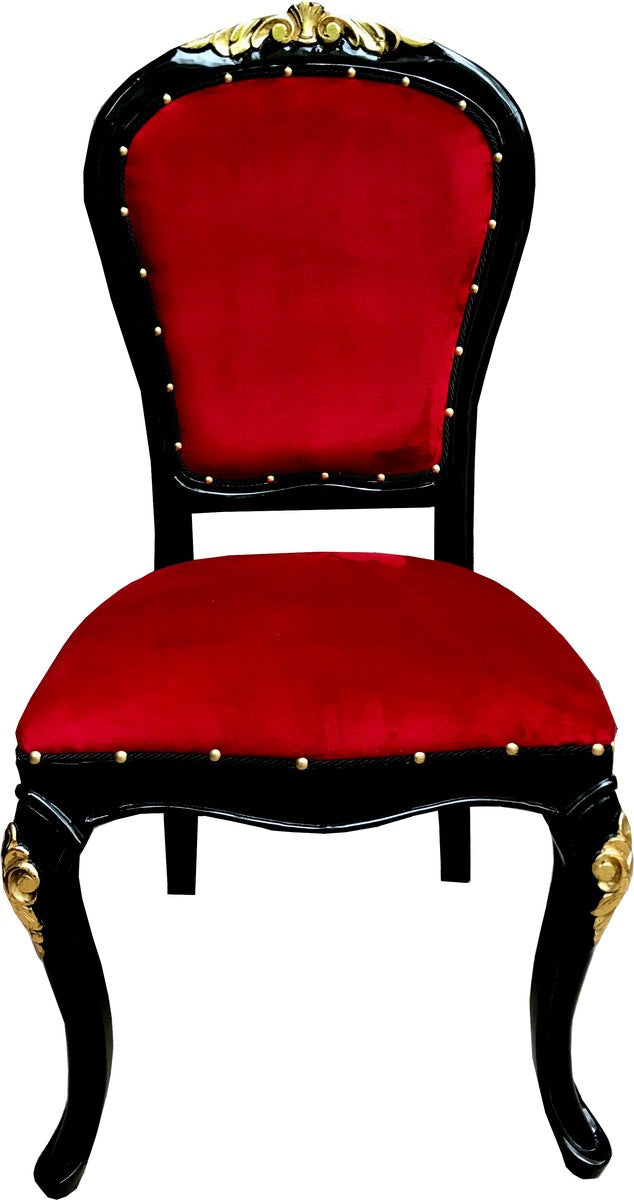 Barock Luxus Esszimmer Stuhl Bordeaux / Schwarz / Gold - Luxus Hotel Möbel - Barock Möbel