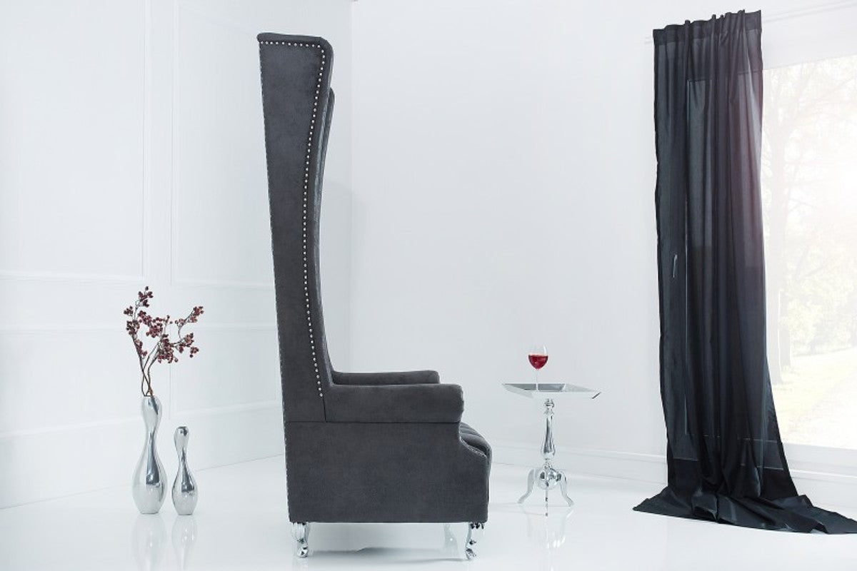 Chesterfield High Back Sessel Grau - Thron König Hochlehn Sessel - Modern Barock Hochlehner