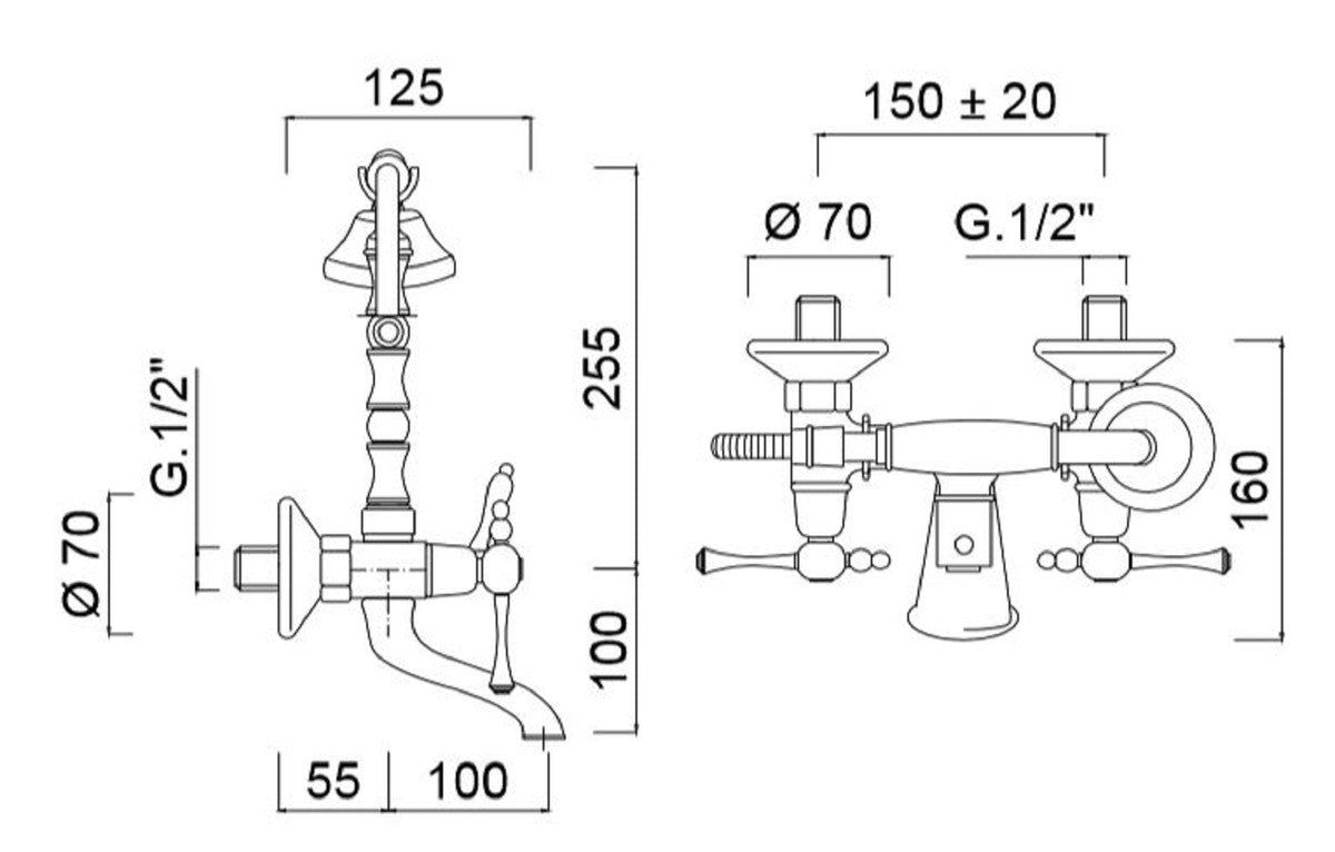 Jugendstil Badewannen Armatur mit Brause Silber / Weiß H. 35,5 cm - Nostalgisches Bad Zubehör - Erstklassische Qualität - Made in Italy