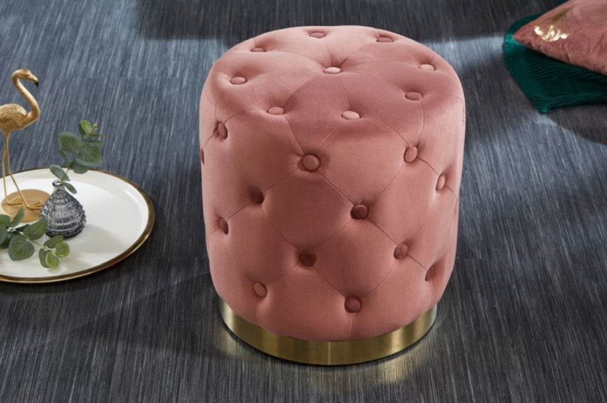 Chesterfield Samt Hocker Altrosa / Gold Ø 36 x H. 40 cm - Runder Sitzhocker - Chesterfield Möbel