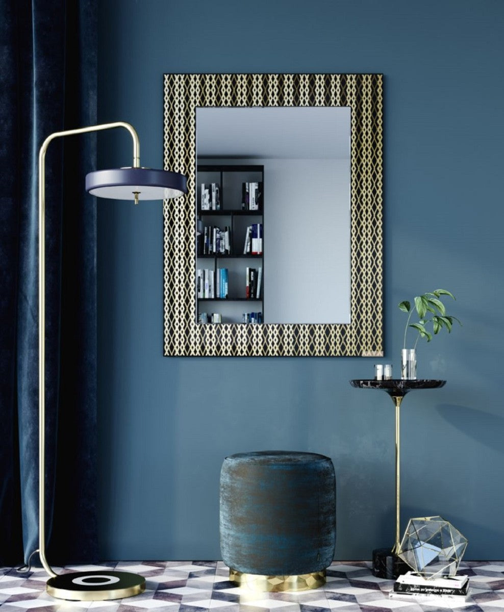 Designer Wandspiegel Schwarz / Bronze / Gold 99 x H. 127 cm - Wohnzimmer Spiegel - Garderoben Spiegel - Luxus Qualität
