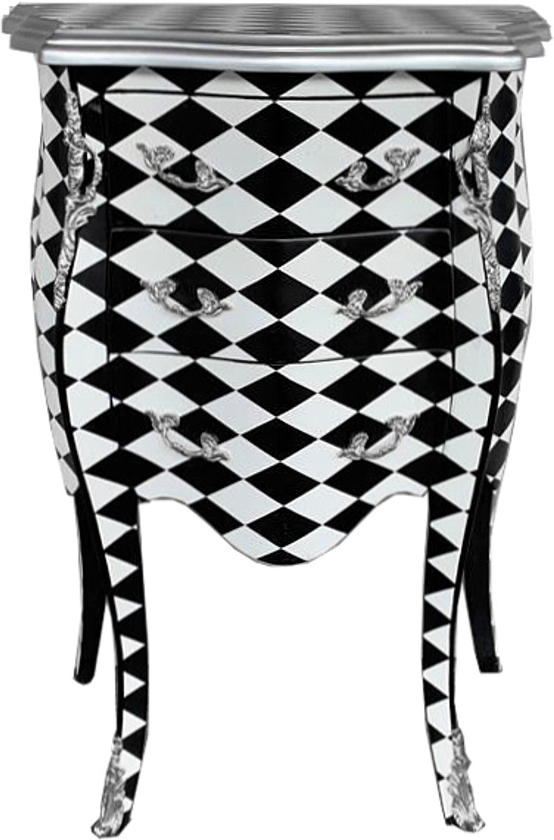 Barock Kommode Karo Schwarz Weiß - Nachttisch Schrank Nachtschrank
