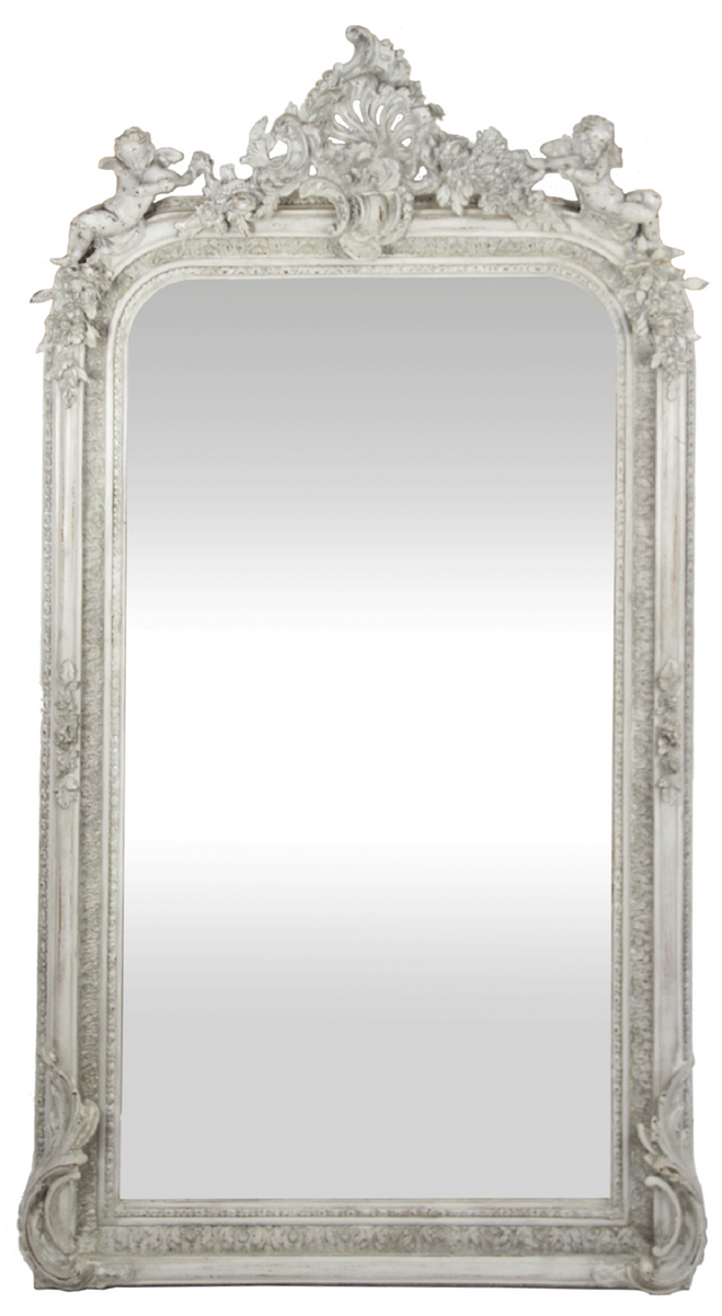 Barock Wandspiegel Antik Weiß 85 x H. 160 cm - Prunkvoller Barock Spiegel mit wunderschönen Verzierungen und dekorativen Engelsfiguren