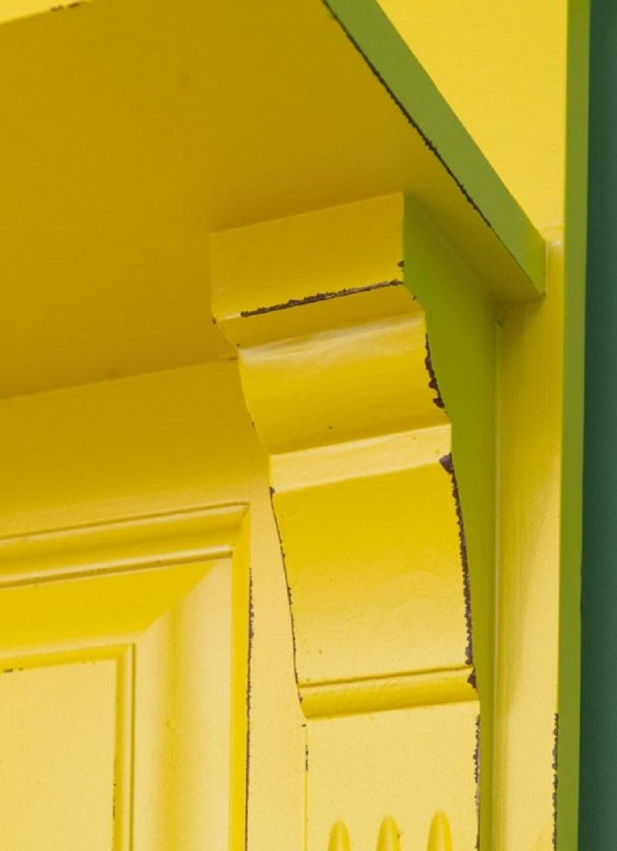 Landhausstil Garderobe Antik Gelb 180 x 41 x H. 210 cm - Massivholz Garderobenschrank mit Spiegel - Landhausstil Garderobenmöbel