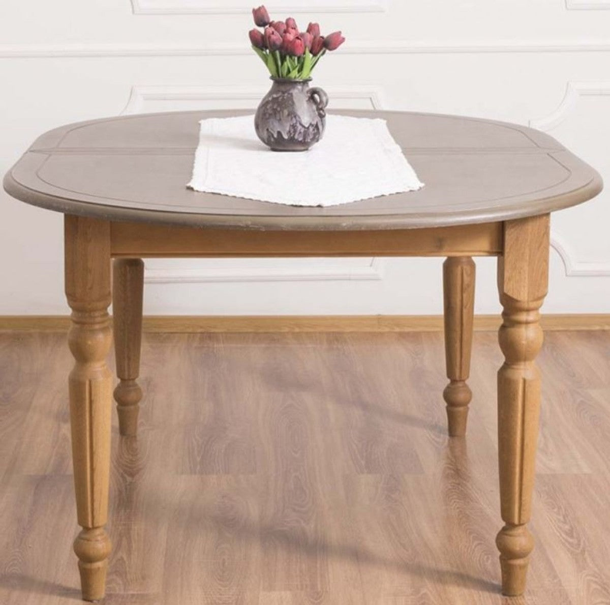 Landhausstil Esstisch Grau / Hellbraun 160 x 120 x H. 78 cm - Ovaler massivholz Küchentisch mit Eichenholz Tischplatte