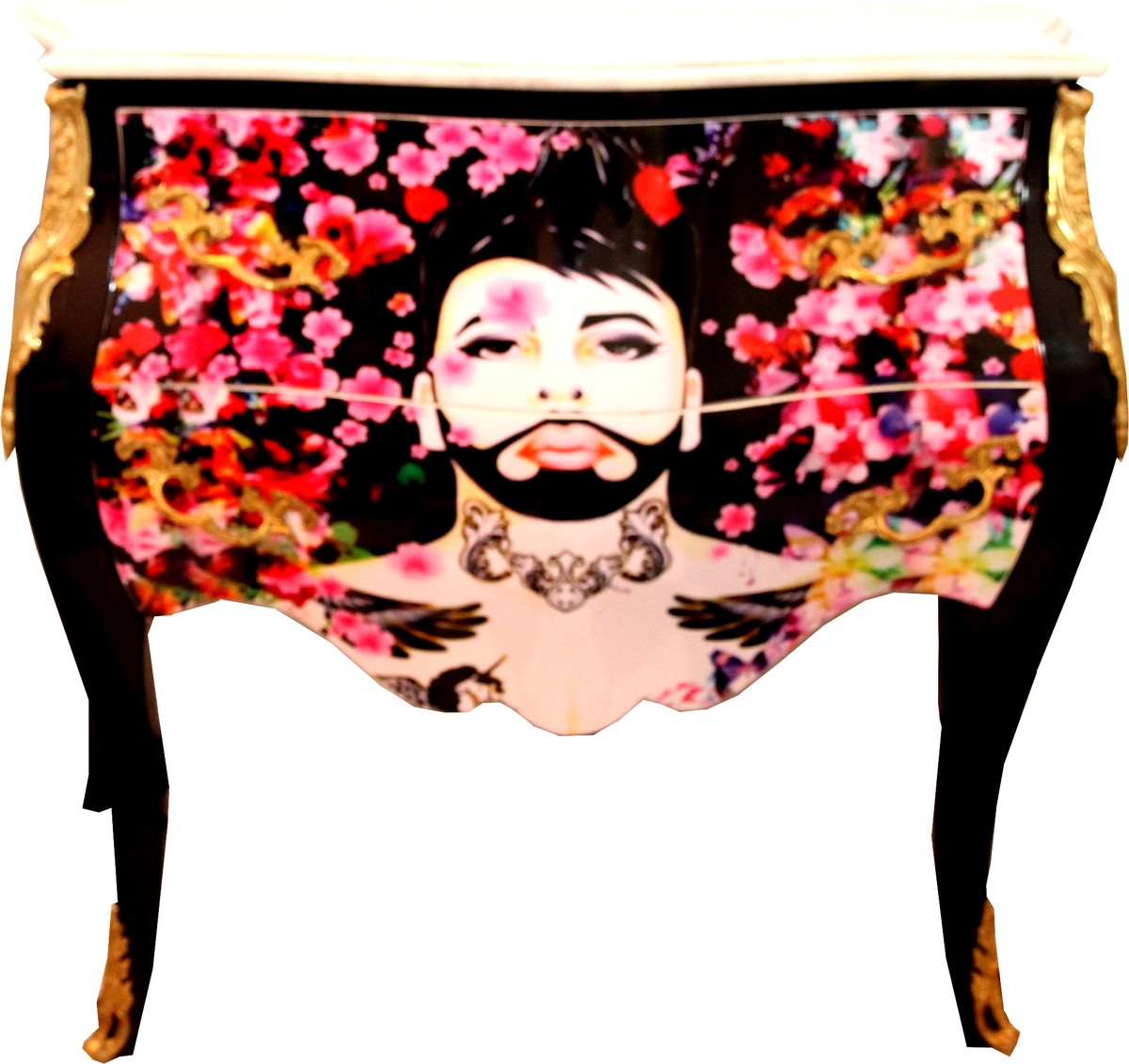 Pompöös by Barock Kommode von Harald Glööckler Schwarz / Gold mit weißer Marmorplatte