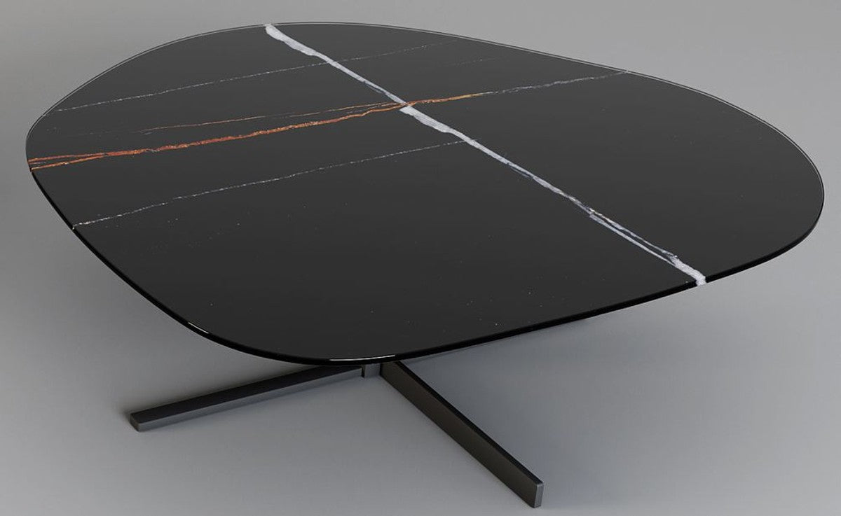 Designer Couchtisch 109 x 100 x H. 37 cm - Verschiedene Farben - Wohnzimmertisch mit edler Glaskeramik Tischplatte in Marmoroptik - Luxus Wohnzimmer Möbel