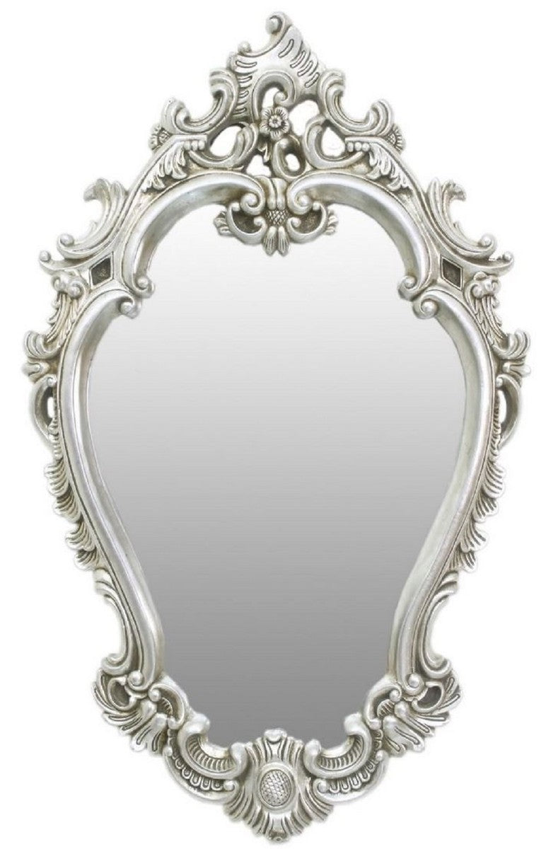 Barock Spiegel Silber 65 x H. 105 cm - Prunkvoller Wandspiegel im Barockstil - Garderoben Spiegel - Wohnzimmer Spiegel - Barock Möbel