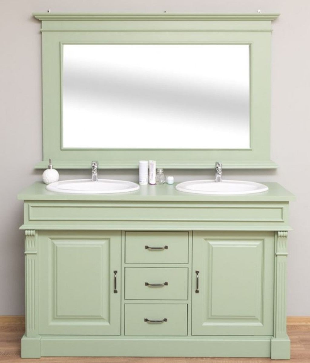 Landhausstil Badezimmer Set Hellgrün - 1 Doppelwaschtisch & 1 Wandspiegel - Landhausstil Badezimmer Möbel