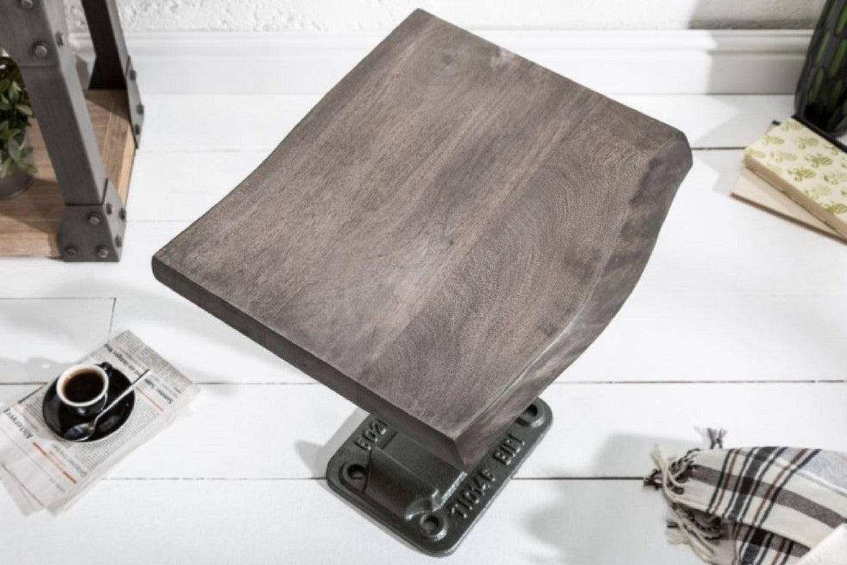 Industrial Design Beistelltisch Grau 43 x 35 x H. 46 cm - Industrie Stil Metall Tisch mit Massivholz Tischplatte - Industrial Design Möbel