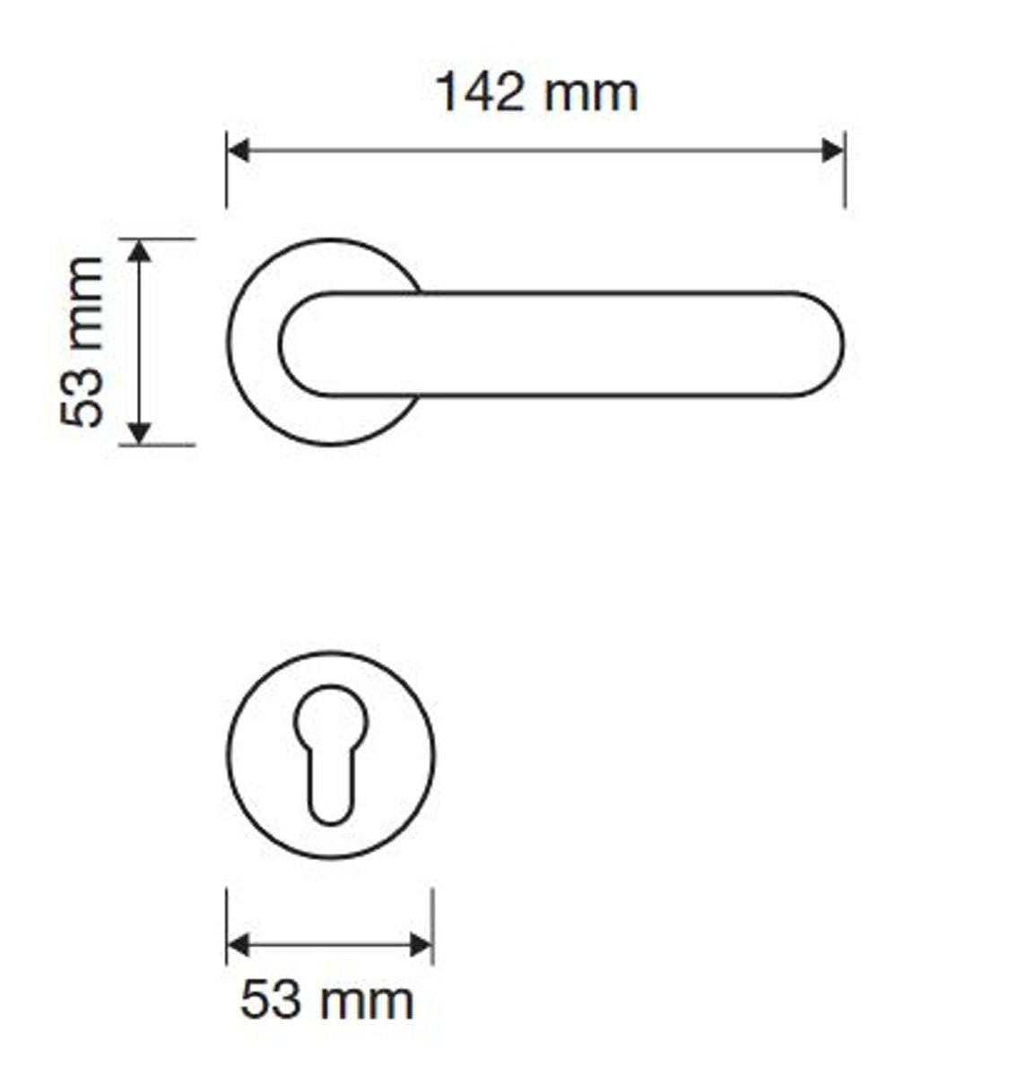 Abmessungen der Türgriffe: 142 x H. 53 mm