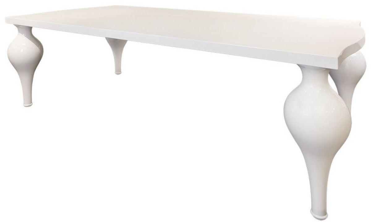 Neoklassik Esstisch Hochglanz Weiß 220 x 110 x H. 75,5 cm - Massivholz Küchentisch - Esszimmer Möbel im Neoklassischem Stil