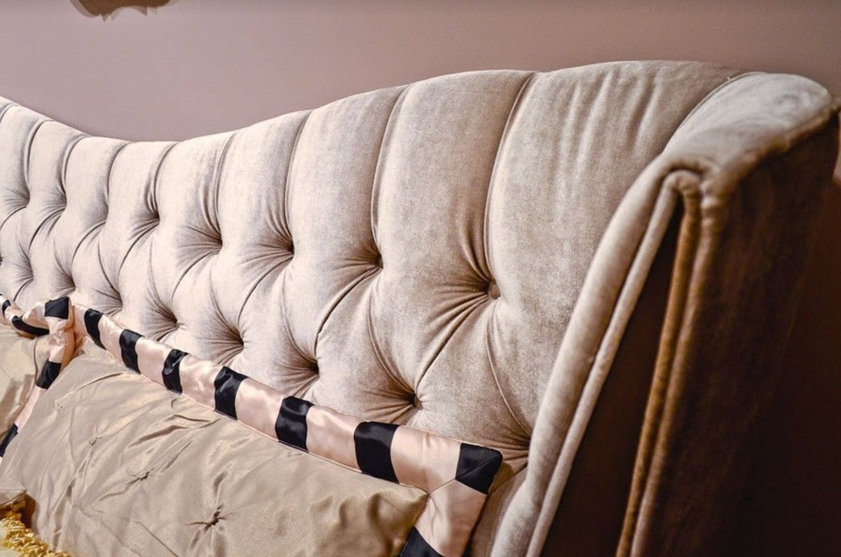 Neoklassisches Doppelbett Grau / Dunkelbraun 240 x 230 x H. 134 cm - Massivholz Bett mit Kopfteil und edlem Velourstoff - Schlafzimmer Möbel im Neoklassischem Stil
