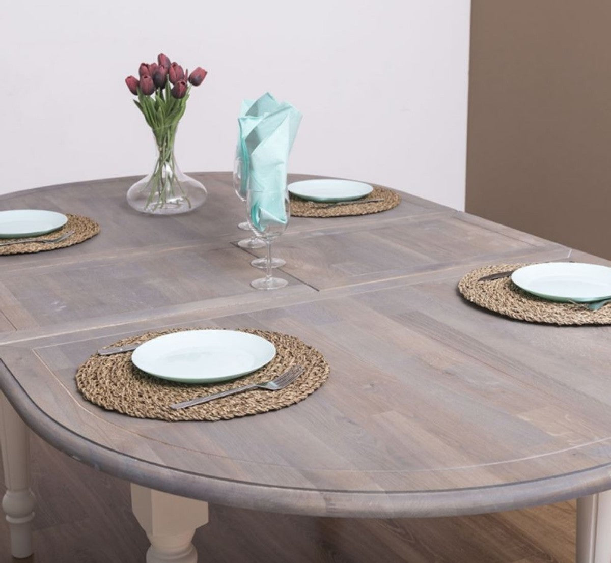Landhausstil Esstisch Grau / Weiß 160 x 120 x H. 78 cm - Ovaler massivholz Küchentisch mit Eichenholz Tischplatte - Esszimmer Möbel im Landhausstil
