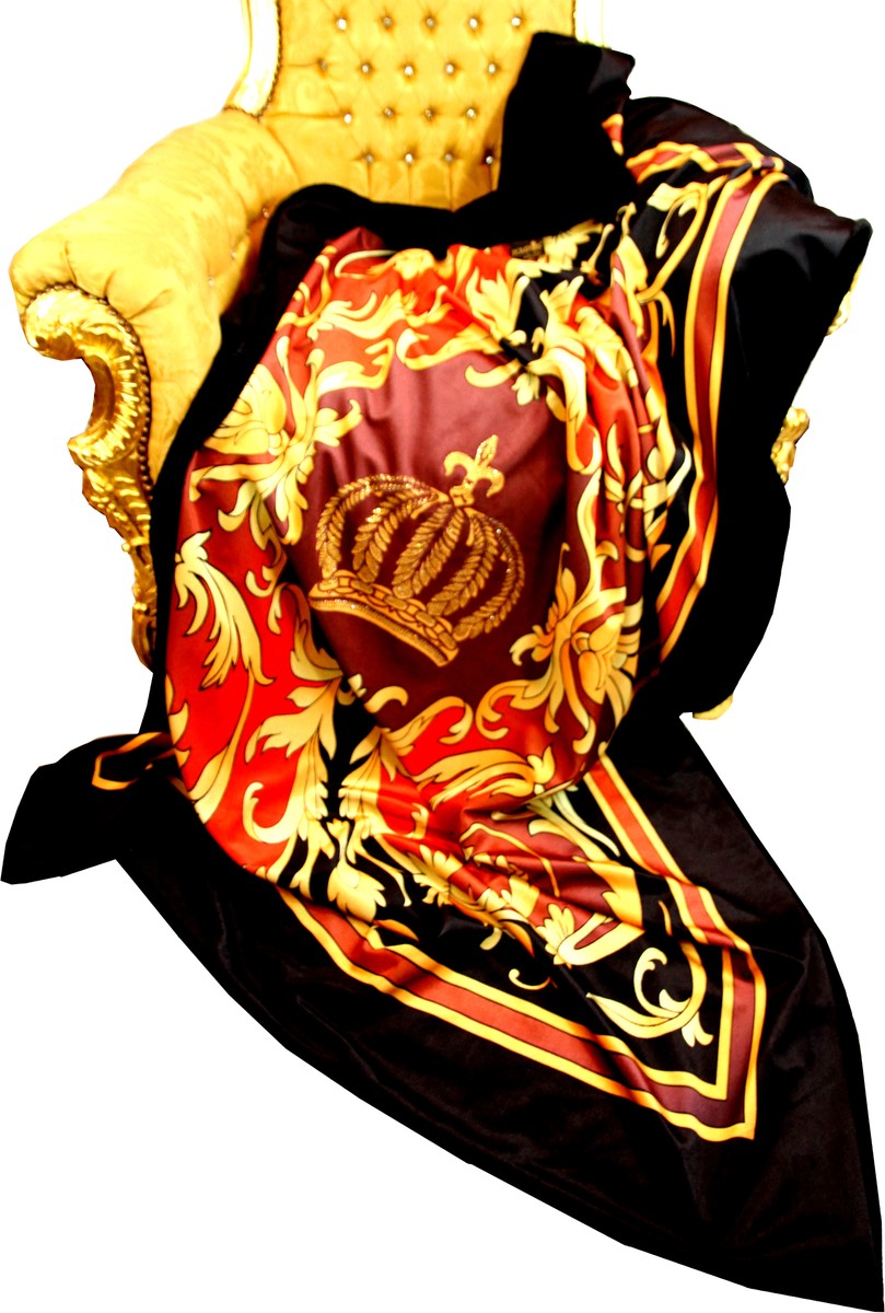 Luxus Wohndecke Pompöös by Barock Bordeaux Schwarz Muster / Gold von Harald Glööckler mit Glitzersteinen