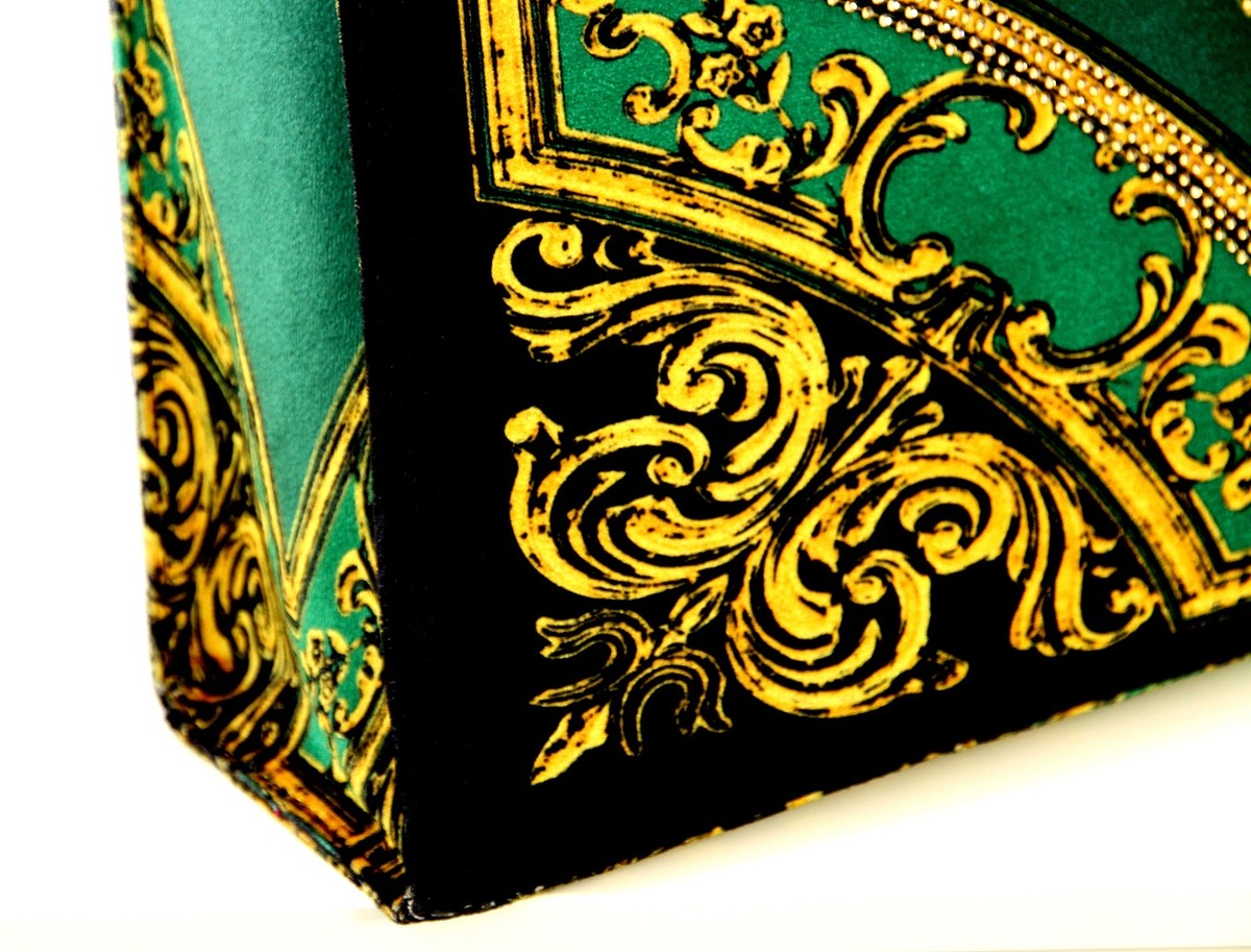 Pompöös by Luxus Damen Handtasche Krone und Glitzersteine Grün / Schwarz / Gold 43 x H. 43 cm - designed by Harald Glööckler