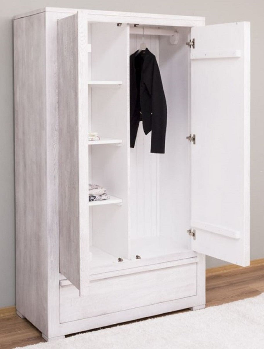 Landhausstil Kleiderschrank Weiß 110 x 53 x H. 190 cm - Massivholz Schlafzimmerschrank mit 2 Türen und Schublade - Landhausstil Schlafzimmer Möbel